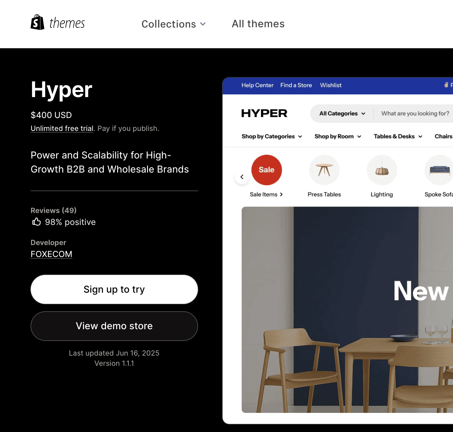 We chose the theme "Hyper" based on the features available, the scale of the catalogue it was built for and what micro interactions it had which we could spring-board off of.