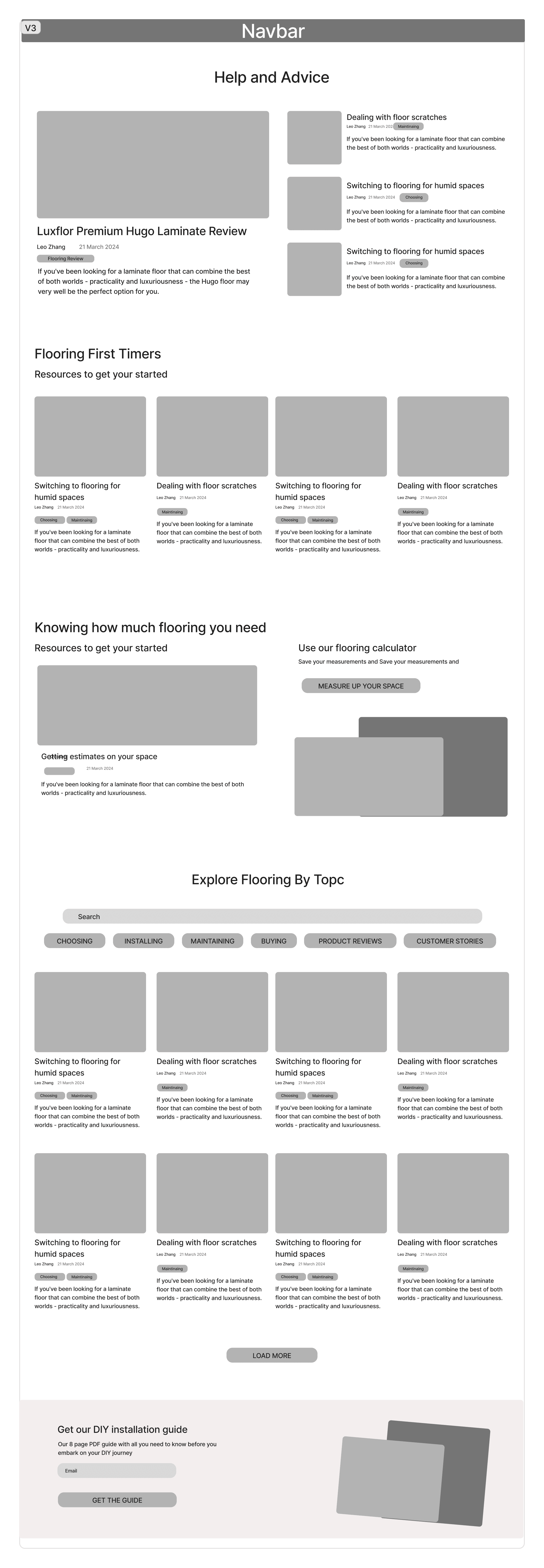Traditionally a blog displays its articles sorted by most recently published, but that did not mean is was the most usable way to present a blog. FloorVenue’s existing blog was already rich with resources, though it trapped them in an un-searchable, un-filterable, tedious to navigate page.