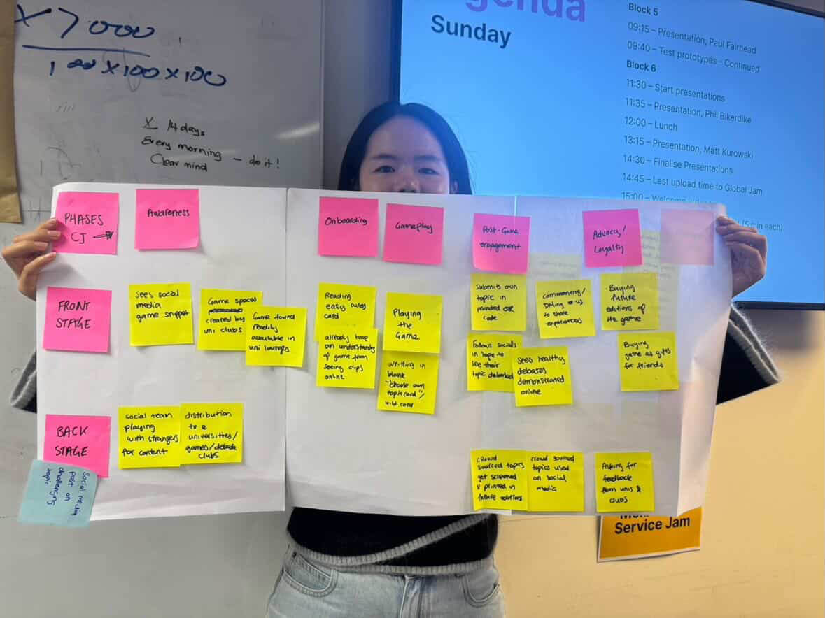 Melbourne Serivce Jam is one chapter of the Global Service Jam – a two and a half day service design sprint that occurs on the same weekend in cities around the world, from Toronto to Hong Kong. Across cities we were revealed the same nebulous brief and given the mentorship of senior service designers and the bright ideas of our team mates to interpret, ideate, research, prototype and present our service design solutions.